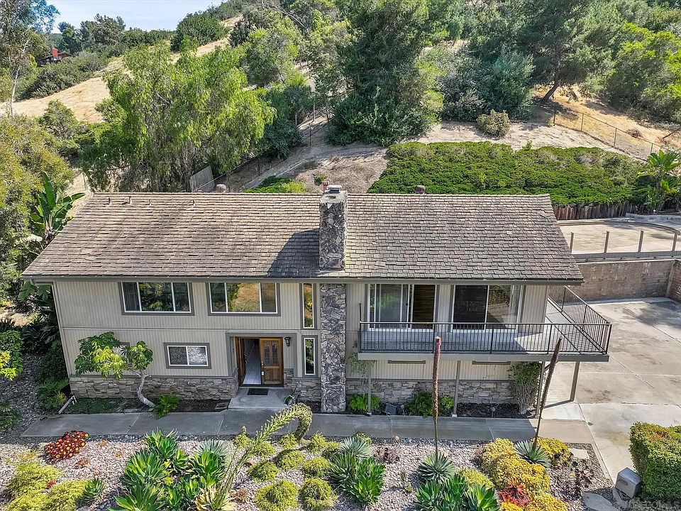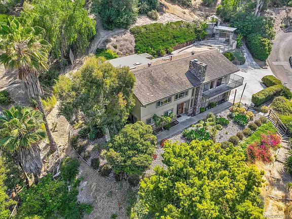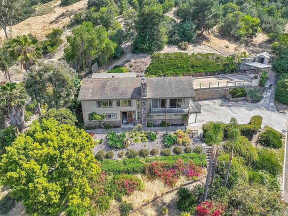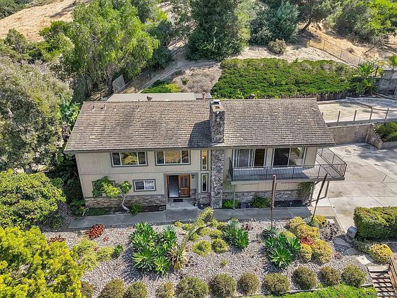 Welcome to Bonita Valley! This custom home features 360 degree views, interior & exterior flagstone accents, large entertaining areas and over one acre of land. Due to the large lot size, an ADU may be possible. Three of the bedrooms and one bathroom are located on the first floor with the laundry room and the only over size garage in the area with a fireplace. The primary suite with walk-in closet, primary bathroom, full guest bathroom, kitchen, dining room, living room with flagstone fireplace and family room are all on the second level. The two skylights, multiple windows and doors provide natural light throughout. An oversized covered patio is perfect for entertaining in the shade. Beautiful nature views expound from every window and glass door on this level. The balconies off the living room offer great views of the valley. Mature landscaping and citrus trees surround this private oasis on the hill. The huge driveway offers plenty of parking spaces without blocking the garage. RV or boat parking may be possible on the large lot. This fine property is conveniently located near both golf courses, equestrian and walking trails, restaurants, shopping centers and schools.