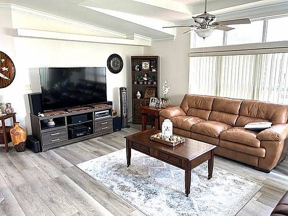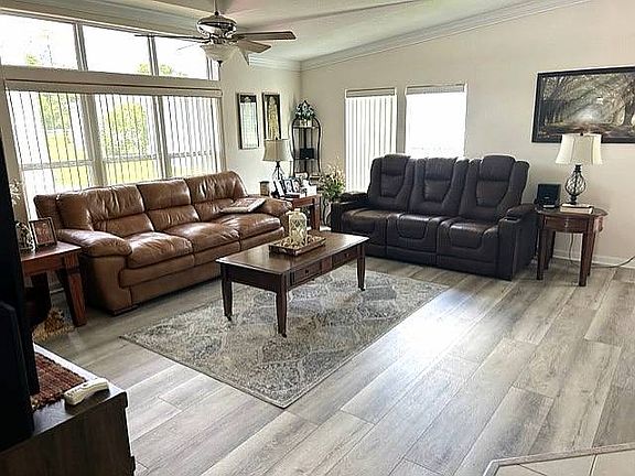 This amazing home offers 1624 SQ. FT. with an additional front Florida Room for a total of 1924 SQ. FT. 2 Br 2 BA and Office or Den, Completely Furnished, New laminate floors, Large master suite with master bath, Nice sized bedrooms, Open concept spacious kitchen, Dining room and living room great for entertaining, Separate laundry room, 3 windows in living room have been replaced. 2 Car Garage, Double car carport and spacious double driveway, Covered back patio. New shingled roof and new metal roof on carport. New gutters and downspouts. Golf cart included. SB3920