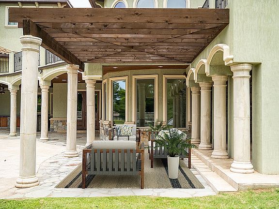 Resort-like living in the city limits of Norman. This home was designed as a retreat for entertaining enthusiasts looking for privacy, space, and breathtaking views of the 10 mile flats. Home seamlessly balances modern amenities w/ timeless, classic rustic design. It overflows w/ character & charm w/ stone walls & columns, 24 ft. vaulted ceiling in the living and dining room, 22 ft. ceilings in the master. Expansive balconies & covered porches overlook the pool,hot tub, fire pit (with stone seating) & backyard. Rare architectural gem in one of the most beautiful neighborhoods in Norman. 5 living rooms plus to 2 studies. 3 Oversized en-suite bedrooms w/ balconies. Master suite includes his & her closets, private outdoor shower, soaking tub, steam shower, prayer closet, & fireplace. Kitchen boasts 48in.Wolf gas range,indoor pizza oven,double ovens, under counter frig, warming drawer, and wet bar area for ice machine & wine frig. Custom European tilt and turn windows. TOO MUCH TO MENTION.