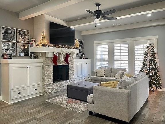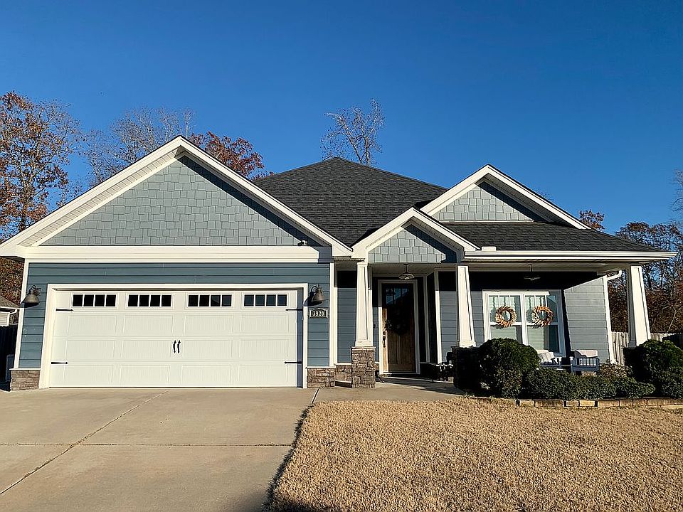 The home was built in 2015 and has tile in common areas, stainless appliances, and plantation shutters throughout. Open kitchen w/breakfast bar, built-ins in living room, and fireplace. Master closet walks through to laundry and to hallway/mud area. Whole home automatic generator, extra parking pad, energy efficient features throughout, alarm system. Covered front and back porches, level lot! Built-in security system