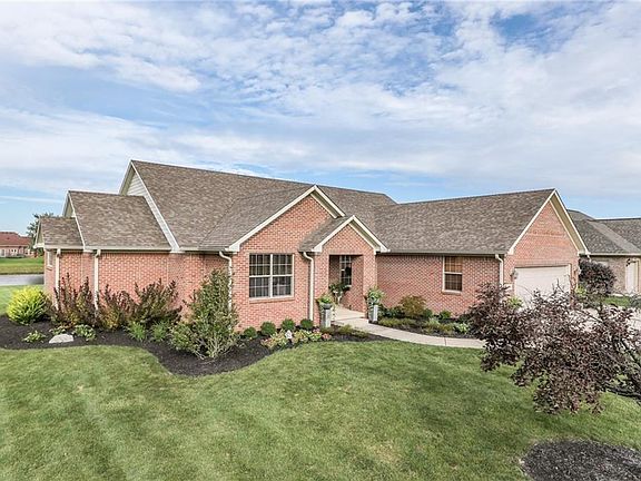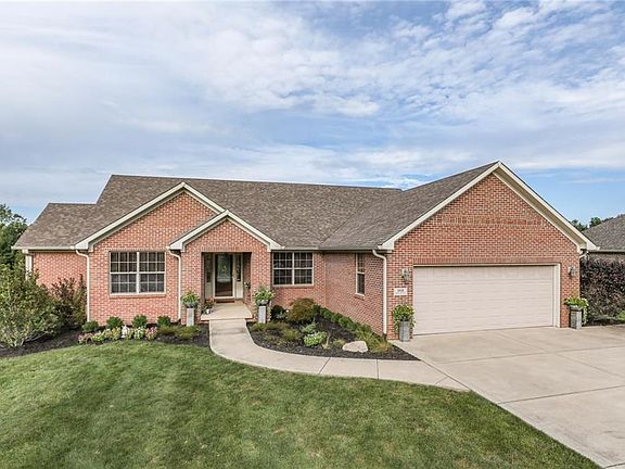 Beautiful Custom All Brick Ranch home, complete w/Cathedral ceiling in the great room along w/gas fireplace. Formal dining room w/tray ceilings just off of the gourmet kitchen. Eat-in kitchen & breakfast bar, granite counters, kitchen appliances stay, wood cabinets, & hardwood flooring. Master Bedroom w/tray ceilings & well appointed en-suite; dual sinks, sep. full shower, & jetted tub. Imagine relaxing in the jetted tub after a long day at work. 2 additional nicely sized bedrooms, 2.5 baths, sep laundry rm w/utility sink, w/d stay. Enjoy your morning coffee in the screened-in patio with pond views or take a seat on the custom-made backyard paver-patio that is perfect for entertaining.