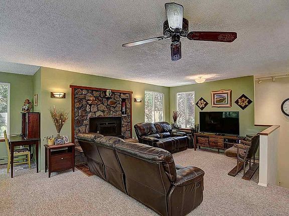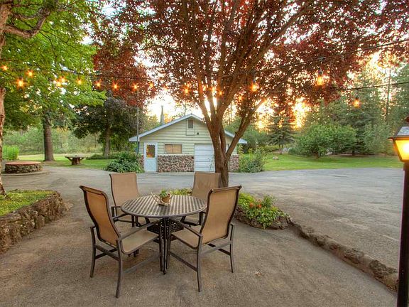 GORG private park-like setting nestled in a variety trees on 2.8 AC only 7 min to downtown! Att 2 car gar & 2 shops (1 heated) plus a cov in-ground pool! 4 bed, 2 ba, 2574 sq ft w/a new kitchen! Updtd ba, windows, & flring in the entry area. Metal siding & vinyl windows. Huge fam/game rm w/a FP up & down. Great rm on main flr. Established orchard, berries, raised garden beds, grnhouse, chicken coop, bridges, water feature, patio, lrg area of yard or pasture for kids & pets. Cent Vac. Paved drive & prking.
