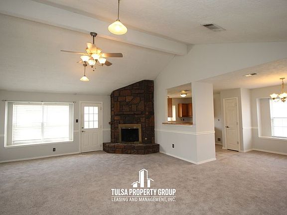 Cute home in Broken Arrow! Three bedroom- Two bathroom- Two car garage- Large living space with vaulted ceilings and a fireplace- Kitchen includes range, oven, microwave, and dishwasher with plenty of storage space- Vaulted ceilings in the master bedroom with a large walk-in closet and en suite- W/D connections- Large fully-fenced backyard!