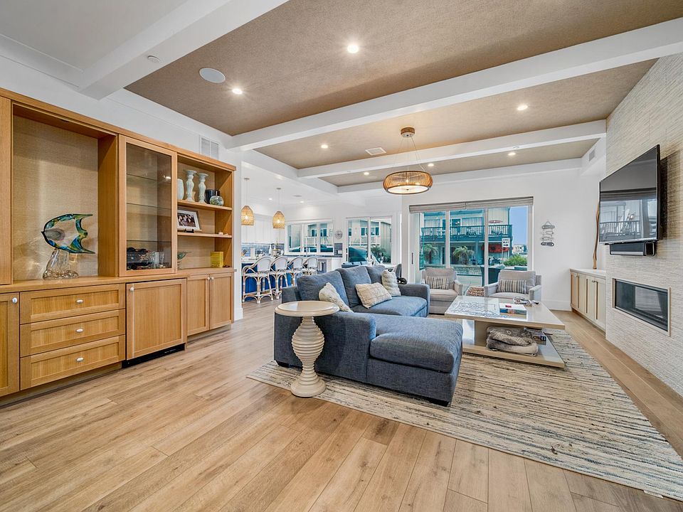 Enjoy the crashing waves and mesmerizing sunsets from this newly built 5-bedroom home! Only one house from the beach, this Newport Beach gem is the perfect retreat for anyone looking for beach-close living. This home was built with the utmost care to detail, featuring a great room that is perfect for entertaining. The gourmet kitchen includes Jenn-Air appliances, beverage fridge, quartz counters and beachy blue accents, double ovens, bar seating and a Butler's walk-in pantry. The downstairs also includes an ensuite bedroom, powder room, motorized shades and access to a 2-car garage plus two carport spaces. Upstairs you will find the laundry room and three additional bedrooms with the voluminous main bedroom featuring two walk-in closets, double sinks and a deck with ocean views. A 5th bedroom suite is on the third level along with a roof deck where you can take in the Catalina and Palos Verdes views. Soak in the jacuzzi or just enjoy the sun from the expansive corner patio in this beautiful location along the California Riviera! Close to all the Newport Beach attractions, HOAG hospital, John Wayne airport and Fashion Island shopping! Submit on pets