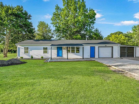Say hello to this incredibly refreshed & remodeled 3 bedroom, 2 full bath ranch on a very private feeling 0.32 acre corner lot with fenced back yard & peaceful almost country setting. Located in the McKinnie-Senate subdivision just west of Hessen Cassel Rd, you can enjoy the fresh air & beautiful nature views without the long drive & inconvenience of the distant countryside. Nestled in a quiet area with minimal through traffic, home is across the street from a big field with lots of tall trees & more tall trees on the lot offering shade & privacy. You might never guess this home was built in 1957 as it has been completely updated from inside out! Exterior looks crisp & clean with new siding, new roof, tidy rock beds ready for summer planting & blue accent doors that pop. Attached one car garage with cement apron is supplemented with oversized gravel driveway for additional parking & attached shed that is very long for all your tools & toys. Covered front entry opens to very clean & inviting atmosphere complemented by fresh grey paint & wood flooring throughout—the perfect backdrop to your own personal style! Main living room is spacious & bright with recessed lighting & large open entryway to kitchen/dining. Stunning eat-in kitchen is all new featuring a central island with seating, stovetop & drinks fridge underneath! There’s plenty of white Shaker cabinets, SS appliances & white tile backsplash plus laundry room with garage access off kitchen. Unique bonus space one step down from kitchen has a door to back yard & could be used as a sitting or rec area or potential home office/studio. Hallway & all 3 bedrooms are newly carpeted with ample storage throughout. Generous primary bedroom boasts sliding glass doors to back yard & modern en suite bath with walk-in shower & stylish hard surface vanity. Remaining 2 bedrooms are both comfortably sized; main shared bath has tub/shower & updated vanity as well. Back yard feels extra big with lots of vegetation making it feel like a lush green retreat. Conveniently close to I-469, Decatur Rd & IN-930 for easy access to nearby shopping, dining & groceries. Minutes from local amenities such as McMillen Park, El Paraiso Mexican Restaurant & several shopping plazas. If you’re looking for a picturesque landscape with a short drive to town & a just like new home—look no further! Don’t let this one slip away, it won’t last long!