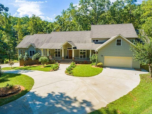 LUXURY Living. Luxury estate offering privacy, prime location and plenty of space for loved ones. Perfect for the growing family, corporate housing and many more possibilities. This stunning custom-built home features a large kitchen with a working island and bar seating, granite countertops, custom cabinetry, and TONS of natural light. The great room leads to a spacious composite deck overlooking a flowing creek and meadow. The main living area offers a beautiful stacked stone fireplace, soaring ceilings, hickory hardwood flooring, and recessed lighting. Enjoy coffee in the morning or wine in the evening at the coffee/wine bar area complete with a professional-grade wine cooler.