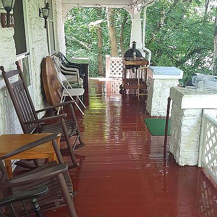 4 acres available in Central School District Stone Craftsman/Bungalow style farmette with 18" thick walls; 2 story