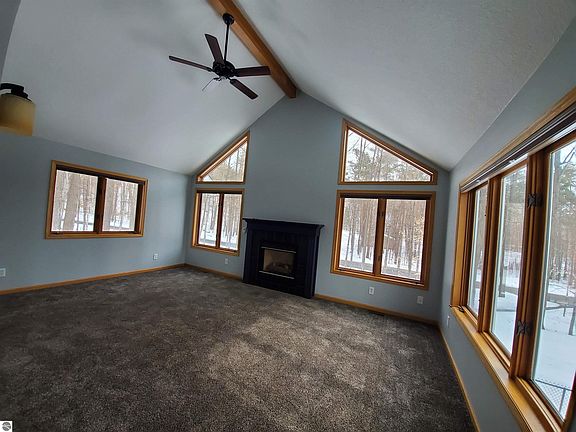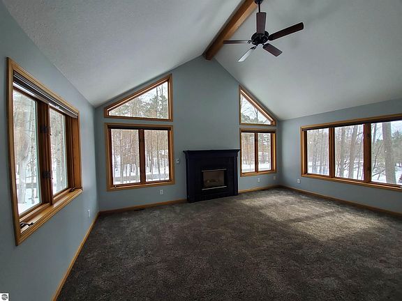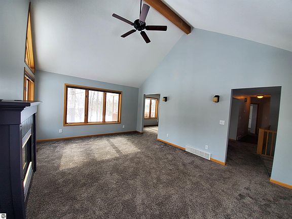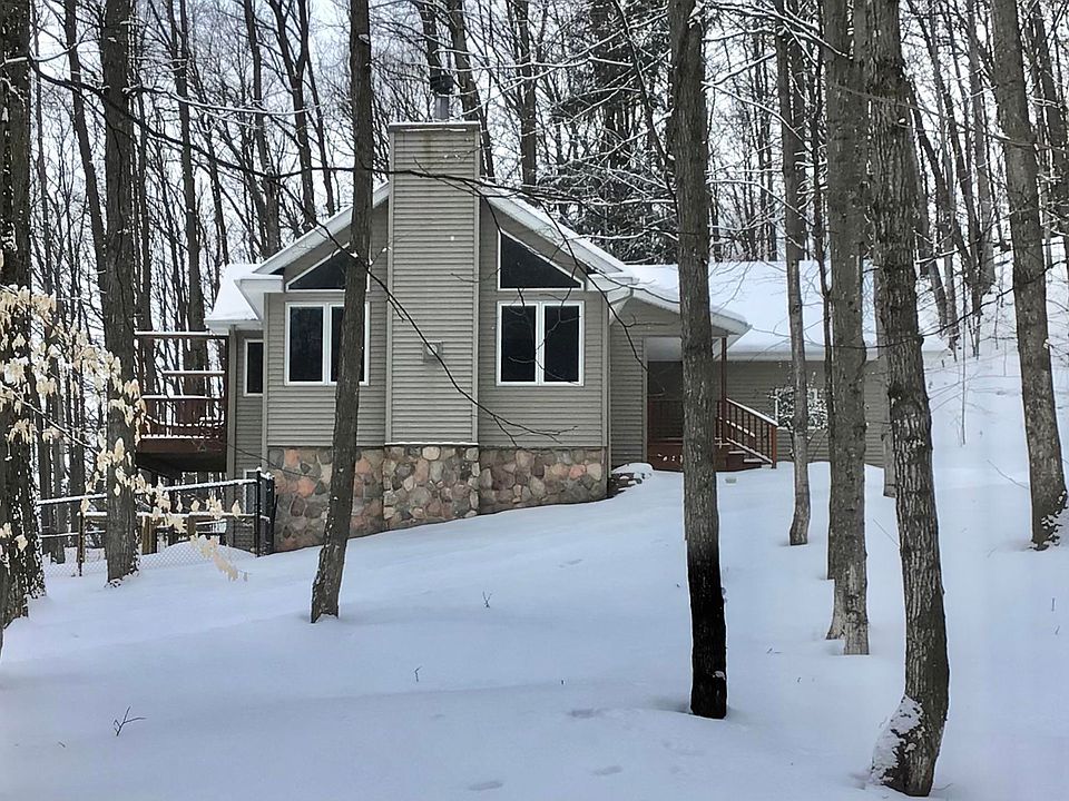 Check out this great 4 bedroom, 2.5 bath home situated on 6.8 acres between Lake Bellaire, Torch Lake and the town of Bellaire. Minutes from Schuss Mountain Resort and hundreds of acres in Glacier Hill Pathway and Natural Area, with 31.5 miles of trails, at the end of the Vandermark Road. A circular drive leads to this impressive home with a large fenced in yard, great room with gas fireplace and lots of windows. Bathrooms, flooring, lighting, paint, appliances, air conditioner and furnace all updated in 2019/2020. The home sits on a hillside with beautiful views all seasons. A covered front porch, back deck and large fenced in yard add to the curb appeal. Natural gas is available to this home but seller has not hooked up and is currently using propane.
