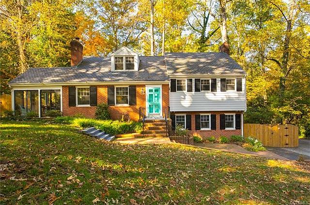 Beautifully updated brick and slate home in Stratford Hills, just south of the James River! Hardwood and new tile floors throughout. Large, open and bright living spaces - great room with masonry fireplace, sunroom with new tile floor and family room with masonry fireplace and new tile floor. Updated kitchen with soapstone countertops, subway tile backsplash, stainless appliances with gas cooking, farm sink and large dining space. Three bedrooms with hardwood floors, and two and one half updated bathrooms. Master suite has two closets and spa bath with large tile shower, double granite vanity. Other recent improvements include new staircase to lower level, new exterior doors and rear privacy fence. Detached storage shed with metal roof and electric service and large rear deck. Ten year tax abatement in place. Walk to Southampton Recreation Association and the river!