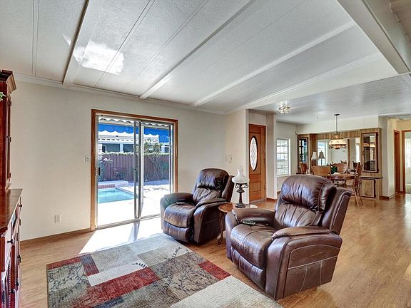 Step into your perfect sanctuary with this tasteful manufactured home nestled in the peaceful surroundings of Palm Desert. Welcome to a spacious lot & a beautiful, newly plastered sparkling pool, with a new pump and filter. Pool-side parties are a must and this is truly a grandkids delight! This residence strikes a perfect balance, offering a tranquil environment for a mature, sophisticated lifestyle. As you enter this delightful freshly painted home, you're welcomed into a spacious living area illuminated by natural light, complete with a cozy fireplace. Adjacent to the living room, you'll find the dining area, bathed in the glow of broad windows that invite the sunshine indoors. It's an ideal spot for leisurely morning coffees or quiet dinners in a cozy setting. The serene ensuite primary bedroom is a true haven of relaxation. Split floor plan ensure that your guests are treated to comfort & privacy during their stay. This home has been totally re-plumbed, a newer roof installed & the HVAC was replaced in 2016 & recently serviced. Add all that together along with it is still on tags for tax savings, & you have the perfect home that offers a place to create lasting memories & savor well-deserved comforts. Low HOA fees include free golf at an 18-hole executive golf course & pro shop, clubhouse, lounge, 3 community pools, hot tubs& exercise room. Add a billiard room, card room, indoor shuffleboard, tennis courts, pickleball courts, library, recreation room, & nearly 40 clubs to realize all that PDGCC offers for your perfect desert home.