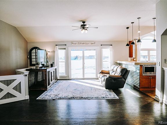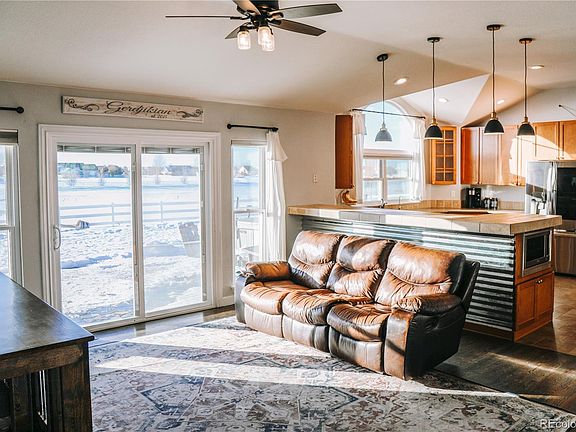 Home is located 45 minutes from downtown Denver, 30 minutes to DIA, and 10 minutes from closest grocery store. Property is zoned for horses.