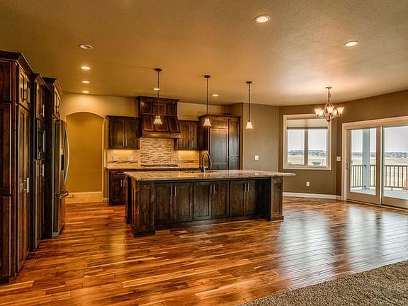 Best Views in Bismarck from this 2-story 5 bedroom home at the top of Promontory Point. There is a grand entry, opening to the open floor plan. Kitchen features alder cabinets with LOTS of storage, gas range, & beautiful backsplash matching the unique granite countertops. The kitchen island is a dream - Huge & Grand. The informal dining area leads you to the Covered Deck with impressive views of Bismarck. There is a fireplace in the living area & formal dining area/or/office den. Upper floor, are (4) bedrooms including master suite w/master bath: double sinks, whirlpool tub, custom tiled shower AND VIEWS-VIEWS-VIEWS from the panoramic windows. There is also a sitting room on this floor for late night TVs close to the bedrooms. Laundry room is on this floor. Downstairs is a huge family room, another bath & bedroom. The garage can accommodate 4 cars - easily - with heat,drain,&water. The views are spectacular from this house - come see for yourself - enjoy the best.