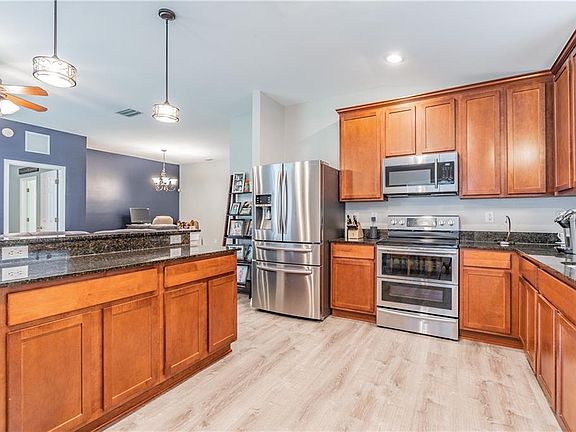 Meticulously maintained. Move-in ready home in the beautiful Ashton Oaks community. The pride of ownership is evident as you walk up the driveway through the well-maintained yard and into the open floor plan of this home. The original owner has maintained and updated this house beautifully. The home features a split floor plan including 3 bedrooms with 2 full bathrooms. The kitchen features 42" oak cabinets, plenty of granite countertops, and eat in kitchen area, plus a huge breakfast bar, and upgraded stainless steel appliances. The large master bedroom, secondary bedrooms, and all the living space including the kitchen have updated vinyl wood look flooring through out. The large glass slider opens to a huge fully fenced in backyard, that backs up to conservation. NO CDD fees and LOW HOA!!!! Ashton Oaks is in the heart of Wesley Chapel and convenient to the areas best shopping and dining experiences, with A rated schools, and so much more! This home will not last long!! Make your appointment to see it today!!!