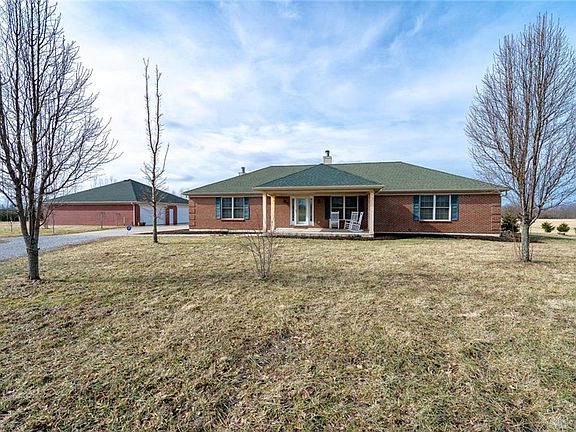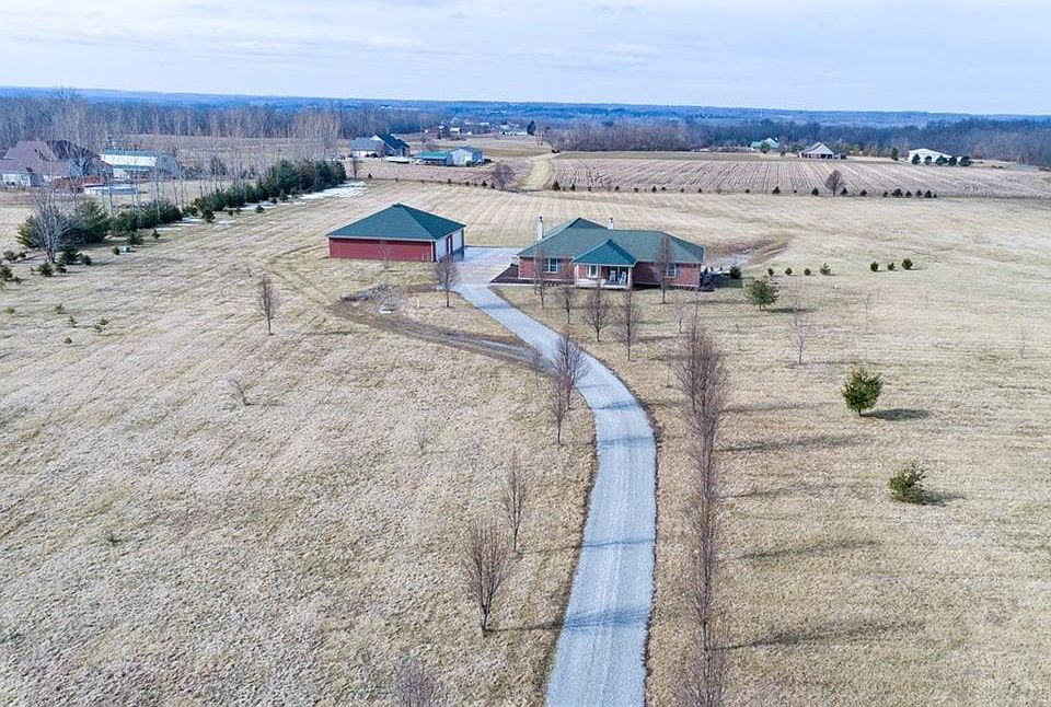 Custom built country home located in the middle of a recreation wonderland, close to work and daily activities. Brick ranch with open floor plan, walk out lower level w/many special features! Vaulted ceilings, 2 wood burning fireplaces, kitchen island w/2nd dishwasher, XL staircase to lower level, master suite with 2nd bedrm conversion to open study, heated/cooled (45x24) 5 car attchd garage, (45x45) 12 car detached garage. 4,600+ sq ft. finished living space! Walk out lower level provides 2 complete bedrms w/full bath plus finished craft rm/study and impressive "Safe Room". The safe room is recorded with county has electric, heat/air and bank vault door, it's certified by county as a tornado shelter. The beautiful 11 acre estate is the perfect setting for horses, livestock, almost any country dream. LOCATED LESS THAN 1/4 mile to 20+ miles of CAESAR'S CREEK BRIDLE TRAILS, 3 miles from boat ramp, dog training, hiking trails, hunt, fish, kayak. SEE 3D VIDEO TOUR & DETAILS ATTACHED