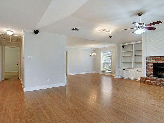 Property is a beautiful place to call home. As you enter, you are welcomed in a grand room w/ vaulted ceilings, wood burning fireplace, custom cabinetry w/warm toned laminate wood floors, surround sound. Kitchen is updated w/new sink, new appliances and Corion countertops. Spacious bedrooms have large walk in closets. Beautiful back yard has double car detached garage, rear yard access, extra slab for boat/trailer, private fence. Property has been professionally painted and cleaned.