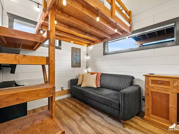 Queen mattressDining areaOpen-concept spaceToaster ovenCovered areaLofted bedCoffee pot