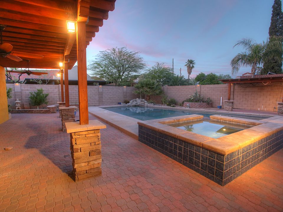 Wonderful Spanish style home in historic San Clemente with den that could be a 4th bedroom, sunroom, office, workshop, outdoor kitchen and grass courtyard in beautiful San Clemente! Remodeled gourmet kitchen with cherry cabinets and stainless steel appliances. Master Suite bath has relaxing jet tub with walk in closet with custom shelving. Spacious yard with plenty of privacy to relax with the custom heated saltwater pool and spa! You will love the covered outdoor kitchen that includes an outdoor oven! Why commute when you can have it all and still be near everything? Located cross the street from Reid Park and El Con Shopping Center, you won't have to go far for what you need! Only 20 mins to airport & 10 mins to U of A. Ask for details about the Historic Home tax discount advantages