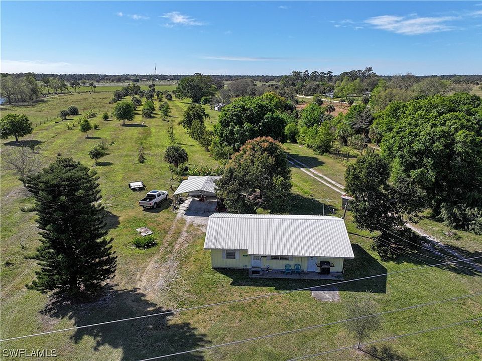 This property is in prestigious Fort Denaud in LaBelle, FL. It offers a rare opportunity with 6.37 acres directly on Fort Denaud Road. Move in right away and be cozy and comfortable. Or after building your dream estate home, the existing home can be converted into a guest house with two bedrooms, one bath, full kitchen, living room, laundry room with hookups and a bonus room for storage or additional living space. The home features a carport, well and septic system all in place saving lots of time and money for the buyer. This former orange grove comes with irrigation running the width and depth of the property. Existing trees include banana, mango, avocado and several Florida native varieties. You can build your dream house with a river view among the waterfront estate homes along the river without the painful riverfront tax assessment. There are no deed restrictions. Horses and livestock are allowed with county approval. Close to downtown LaBelle, the river front, restaurants, shopping and it is an easy 20-mile four lane highway commute to I-75 and Fort Myers.