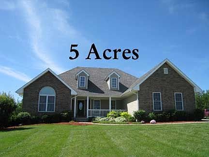 Gorgeous Ranch Style home on 5 Acres. Property sits in a Cul-de-sac on the edge of town. It offers great views of the land from the welcoming front porch or covered patio. Home features 5 Bedrooms with walk in closets to fit the needs of a large family & main floor living for those looking for that convenience.The finished walkout basement includes large family area with bar, office, extra Bedroom & bath & tons of storage. Terrific price for over 3000+ sq feet of living area sitting on 5 acres!Don't miss this deal!