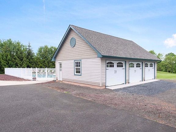 A rare opportunity to experience Buckingham's most luxurious living with this stunning 5 bedroom 4 full bath Victorian home on approximately three acres surrounding this exceptional estate.. Lush grounds and landscaping ,create a stunning backdrop for this custom masterpiece. Complete with an elevator to all 4 floors, this meticulously maintained home with impressive architectural detail has a magnificent open floor plan with walls of windows flooding every space with natural light. BRAND NEW 3 CAR GARAGE with Carriage Style Garage Doors. Geothermal Heating for maximum efficiency. The first level has ten-foot ceilings, giving each room a spacious and open feel. The family room has a gas fireplace with marble surround and extensive molding with French doors to the wrap around covered porch. A gracious eat-in kitchen with cherry cabinetry and granite countertops offers a Subzero Refrigerator, Viking double oven with 6 burner cooktop, large island, breakfast area.. Superior craftsmanship throughout includes, 10 foot ceilings and hardwood flooring on first floor, gorgeous solid wood pocket doors, and custom built-in bar with hammered copper sink in family room. The second floor features an exquisite master bedroom suite with a large walk in closet, sitting area featuring a beautiful octagon ceiling and master bathroom with Jacuzzi Tub, double bowl vanity, separate shower. An en suite with full bath and walk in closet, and two more spacious bedrooms and hall bath complete the second floor. The third floor guest suite has a bedroom, sitting area and full bath with elevator access with breathtaking views of the grounds. Sensational resort-like outdoor oasis includes a front to back wrap around covered porch with ceiling fans, expansive back yard, patio, heated pool and hot tub, surrounded by lush landscape. The bucolic scenery, and meticulous attention to detail make this estate a premier location due to its proximity to Peddler's Village, New Hope Borough, Doylestown Borough and easy commute to Philadelphia and NJ. . A rare opportunity to find a home of this quality and craftsmanship at this price. A special place to call home.