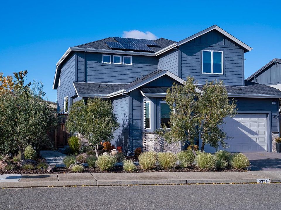 Immaculate and inviting, this stunning 5-bed, 3-bath, 2,971 sq ft custom Fountaingrove home is effortlessly exceptional. Imagine yourself at home here, where wide wood French oak flooring, cathedral ceilings, 8' solid wood doors, and remote-controlled blinds attest to the careful attention to detail. Large casement windows invite natural light and offer views of the hills and mountains. Create gourmet meals in the chef's kitchen, which boasts Jenn-Air appliances, soft-close cabinets, a double oven, gas range, Italian farm sink, and walk-in pantry. Two beds/one bath on the main level make entertaining a breeze. Immerse yourself in luxury with limestone flooring and rain shower heads and wands in all bathrooms; the primary bath also has marble walls, double sinks, a towel warmer and soaking tub. Conserve energy with fully-owned solar, a tankless water heater, an electric car-ready garage, and dual-zone heating and cooling; rest peacefully thanks to the ring doorbell, remote-activated alarm system, and six high-end exterior video cameras. Outdoors, high fences create a sense of complete privacy. Take in the mountain views from the bluestone patio, relax on the large covered porch and listen to the fountains, or gather round the firepit in the twilight.