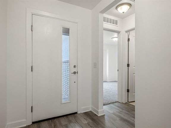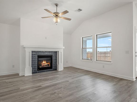 This stunning home features an exquisite entrance, a two-car garage with ample storage space, and a spacious living room with an inviting and open layout. The kitchen is adorned with elegant quartz countertops, a gas range, and a sleek elongated glossy blue-tiled backsplash, perfectly complementing the pristine white-painted cabinets. The focal point of the living room is a captivating fireplace with a beautiful blue tiled surround, creating a cozy and stylish atmosphere. The main living area is adorned with luxurious vinyl plank flooring, adding a touch of sophistication. The primary bedroom is a true retreat, featuring an ensuite with a tasteful pop of color through a blue-painted vanity and a spacious walk-in closet. The modern exterior, with its charming white-painted brick and elegant stained wood elements, adds to its curb appeal. Located in the sought-after Deer Creek school district. This community will allow you to get anywhere in the city in a timely manner. Knox Farm features beautiful well-lit sidewalks for evening strolls around the community and a playground with fun equipment for all ages. Included features: * Two-year home warranty * 10-year structural warranty * Guaranteed heating and cooling usage of most Ideal homes * Fully landscaped front & backyard * Fully fenced backyard. Floorplan may differ slightly from completed home.
