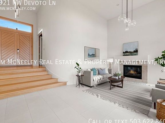 This captivating Modern brings that instant gratification upon opening the front door! High Ceilings, Walls of windows, and dramatic sun filled views overlooking green space and the Tualatin Valley. No roof tops here, just serenity, and a lot of twinkling city lights every night. Clean, meticulous, and modern, this home is turnkey ready to reward you every day you walk in the door. 3 Beds and 2 baths upstairs, and two bedrooms, bath and a rec room on the lower floor. This home offers lifestyle flexibility. Stunning entry with open living and dining, plus an upscale luxurious kitchen with an expansive family room. Enjoy the views from virtually every room in the home, along with decks on all three levels. The primary suite is incredible vaults, deck, fireplace, his/her closets, sauna, and whirlpool soaking tub. Exceptional cabinetry, storage galore, elevator ready. Directions: NW Thompson Rd to NW Devoto Ln To Apply for This Property (Use links on listing on our company website - mcneeley . com. They may not appear on third-party sites) - Pay screening fee: $65.- If you have a pet, assistance animal, or to certify that you do not have animals: https jimmcneeleyrealestatepm. See pet policy on property listing) Date Available for Viewing (subject to change): NOW Please submit inquiries online Screening Fee: $65/person - Pay via PayPal link on listing on our website County: Multnomah Lease Terms: 6,9, or 12 months Heat: Forced Air AC: Yes - Central Air HOA: Yes - tenants agree to abide by all HOA rules and regulations Landscaping : Tenants are responsible for landscaping Utilities included in rent: Trash Utilities paid by tenants: Water/Sewer, Electric, Gas Appliances: Refrigerator, Microwave, Gas Stove/Oven, Dishwasher, Washer/Dryer Year Built: 2002 Levels: Three-level Parking: Attached 3-Car Garage Fenced Backyard: No Vehicle Restrictions: No RV, trailer, or boat parking allowed Schools: Verify online PET POLICY:One small dog under 30 pounds with increased deposit of $500.00. Proof of Renter's Insurance will be required before move- in: JMRE must be listed as an Interested Party and a minimum personal liability limit of $100,000.00 **Smoking is not allowed in any of our rental properties. Some properties may not allow smoking on the entire premises. This includes the garage + within 10 feet of the property ** INFORMATION NOT GUARANTEED AND SHOULD BE VERIFIED. SQUARE FOOTAGE IS APPROXIMATE & MAY INCLUDE BOTH FINISHED & UNFINISHED AREAS. SCHOOL AVAILABILITY SUBJECT TO CHANGE.