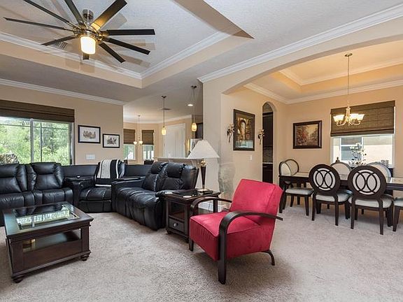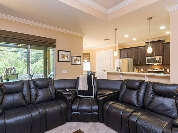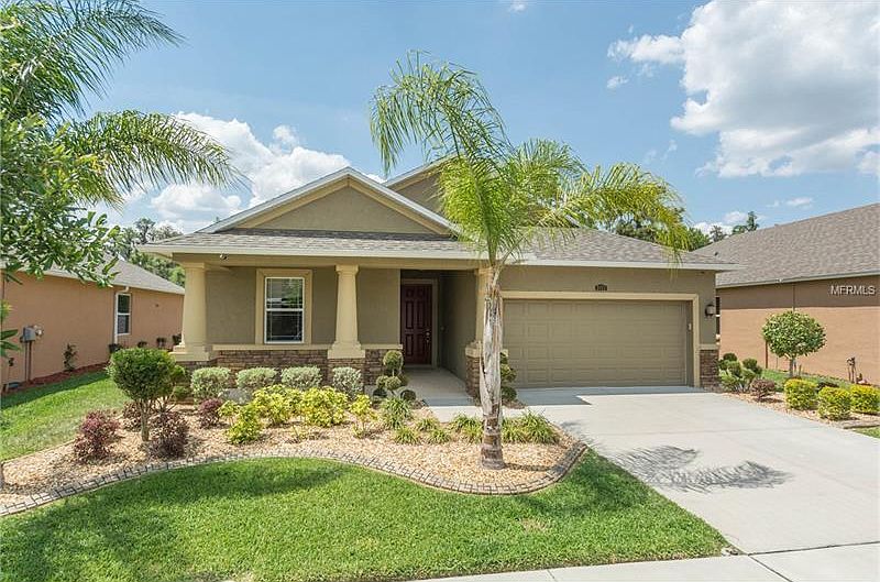 Absolutely stunning 3 bedroom, 2 bathroom home on conservation in Wesley Chapel. Offering LOADS of upgrades and beautiful finishes, this home is a must see! The huge great room features vaulted tray ceilings and has an amazing view of the conservation area in the back of the property. An open floor plan gives this home a spacious feel and offers great natural light from its many windows. Perfect for entertaining, the kitchen is large and features plenty of counter space and a separate breakfast area. Complete with granite counters, solid wood cabinets and beautiful stainless appliances, this kitchen is a dream. The master bedroom is spacious and can accommodate any size bedroom furniture. Bay windows in this room provide a fantastic view of the conservation area beyond. Dual sinks, garden tub and beautiful tiled shower stall complete the master bathroom. You will absolutely fall in love with the covered and screened outdoor living space. This area features a screened and unscreened paver patio area, ceiling fan, outdoor shower and a fantastic koi pond complete with waterfall and one-of-a-kind rock fountain. The backyard has been fitted with artificial bahia grass that stays beautiful and requires no maintenance. Close to shopping, fine dining and all that Wesley Chapel has to offer. Come see this amazing home for yourself today.