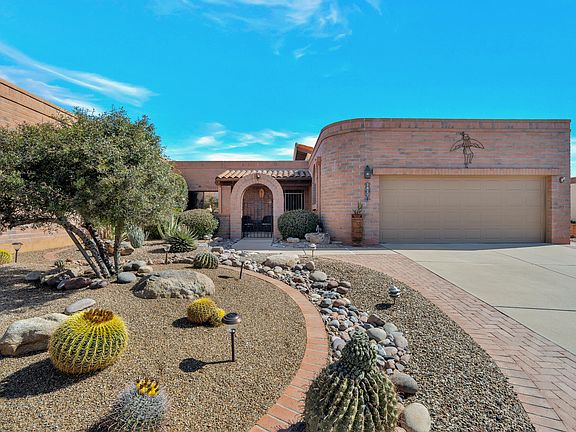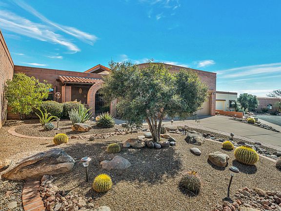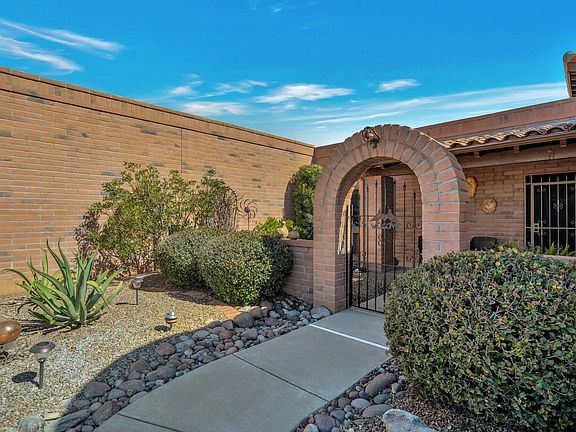 Located on a cul de sac overlooking the Santa Rita Mountains, this lovely home will command your attention from the moment you arrive. This home features outstanding views of the Santa Rita mountains and the valley below them.A metal gate leads into the charming front courtyard. Enter the foyer while taking in the comfortable and relaxing feel of this home. While in the living room sit by the magnificent beehive fireplace with your feet up and escape from the day while you enjoy the view. Step outside to the beautiful, partially covered and private patio where you will spend most of your time creating memories with family and friends on warm desert evenings while enjoying the privacy and views and water feature. The dining area borders the living area, so the view and fireplace are continued enjoyment by your guests. The kitchen boasts a large breakfast counter for a friendly cup of coffee along with an area for casual meals. The den that is in the center of the living space has a pocket door for privacy and a slider for access out to the back patio. It is currently used as extra sleeping and TV watching. Your primary suite is complete with a huge walk-in closet, double vanity, and beautiful walk-in shower. Wake up to mountain views framed by the sliders leading to the patio! The guest suite is in the front of the house for added privacy for your guests. The laundry is conveniently located in the two-car garage. If comfort and amazing mountain views are on your wish list, look no more. This is clearly the home you have been looking for!