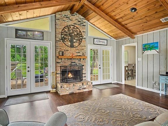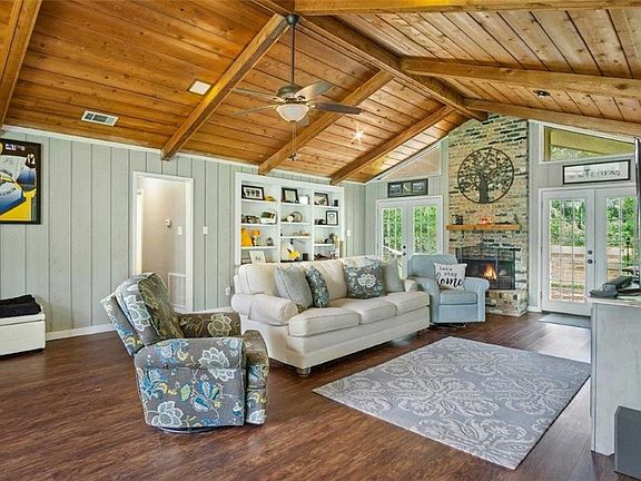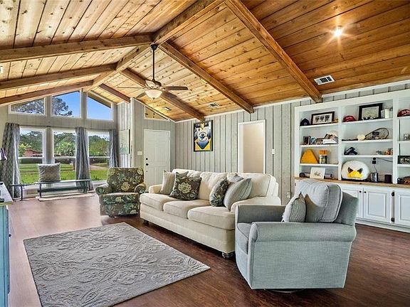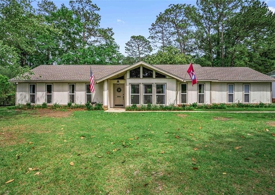 Home was completely renovated/updated in 2019, NEW ROOF, HVAC, APPLIANCES AND WINDOWS all in 2019! From the first step into the home's huge living area and you will be immediately taken in by the charming, soaring wood-stained ceilings, brick hearth wood burning fireplace, floor to ceiling windows allowing tons of wonderful natural lighting, beautiful wood flooring and built-in cabinetry in the living area. Just off the side of the living area is the formal dining area that could be used as a home office as it appears in the photos. This lovely, updated kitchen offers granite countertops, white cabinets, stainless appliances. Just off the kitchen is the breakfast area that overlooks the backyard. The laundry room is spacious with a utility sink and pantry. There is also an attached side entry double car garage with additional shelving and storage, an added room off the garage for storage and housing the central vac system. All bedrooms have nice sized with great closets. The primary suite has French doors offering private access the backyard. Enjoy your evenings and/or weekends on this quiet back patio. The backyard is adjacent to what was previously known as the Linksman Golf Course, which per the local news in February of 2022, Mobile County approved the purchase of this property with plans to reopen it as public 18-hole golf course along with other outdoor amenities. The listing photos were provided by the Seller, these photos were taken prior to the tenant moving in, per Seller photos reflect similar home condition. ***Listing Agent makes no representation to accuracy of sq. ft. Buyer to verify. Any and all updates are per Seller(s).***