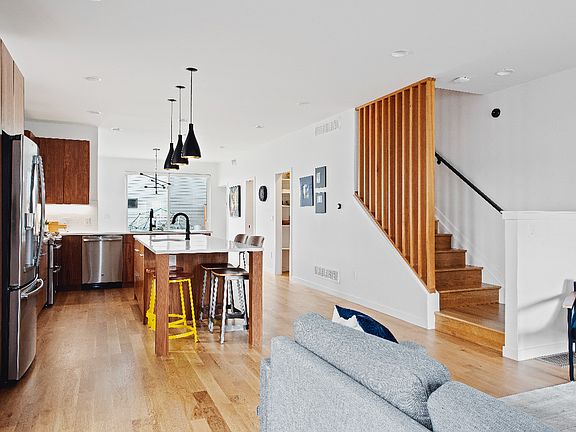 This stunning half-duplex in the heart of the Berkeley neighborhood is all about location! With an open floor plan full of light, walk into the living room with a huge open kitchen and walnut cabinets, stainless appliances, quartz countertops, and a large island. There is a half bath, walk-in pantry with bonus storage and mud room. The dining area opens to the private fenced backyard with built in grilling station, pergola, fire pit, and seating area. Upgrades include white oak wood floors throughout, newer windows, high ceilings, and custom finishes. There are 3 bedrooms and 2 baths on the second floor that includes a primary suite with walk in closet and bath with oversized shower. The third story is an open living area with a gas fireplace, full wet bar, and a half bath. The top floor also has a spacious rooftop deck. The fully finished basement has a 4 bedroom w/Murphy bed, a 3/4 bath and includes a bonus living area and large storage room with a small kitchenette. The two-car garage features a 9ft tall door with built-in cabinets and custom storage. And the bonus to this wonderful home is the walkability to Highland's shopping, tons of great restaurants on Tennyson, and is just blocks from Cesar Chavez Park. It is also close to Hwy 1-70 and an easy commute to Denver, DIA and the foothills. Tenant pays all utilities except water.