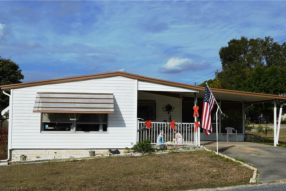 OWN THE LAND! NO LOT RENT! No CDD fees no homeowner's association no fees. This 2 bedroom 1.5 bath manufactured home is located in Kemple Estates. It sits on a corner lot and even has a side entry garage. It has a double roof, new air conditioner and a huge Florida room. Other exterior features include a patio or sun porch, 12x22 screened lanai and a 10x10 utility room. Interior features include newe wood laminate and carpeted floors, new kitchen appliances and double pane windows. The lot is a very large 74' x 110'. The location is one block from public bus stop and within one block of a grocery store.