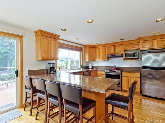 Meticulously cared for updated 1-story home on 1/2 ac, corner lot, backs to green space w/ creek frontage. Quiet & mins to Mill Creek, I5, Hwy 9 & Silverlake. Vaulted ceilings, wood wrapped newer windows, hrdwd flrs, liv rm w/ built in speakers, fp & custom built in shelves, kit w/ granite tile & newer appls. Updated fixtures. Remodeled mstr ba w/ high end cabs & vanity, lrg tiled shower w/ glass surround. Manicured grounds, entertainment deck, fruit trees, lrg shed, new ext paint & newer roof.