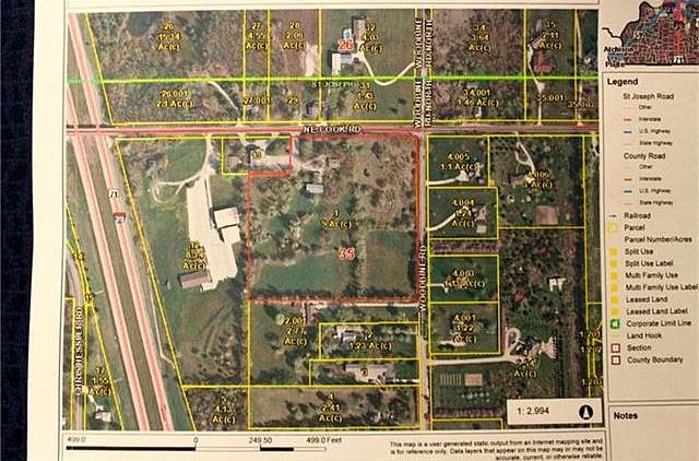 9 Beautiful Acres in the Heart of North East St. Joseph. Lots of possibilities. Plenty of room to build a private estate home, or with parceling or rezoning could build several homes, apartments or a multifamily facility. There is an older home on the property that is sold ''as is'' at no value to the property.