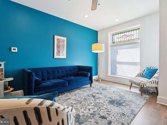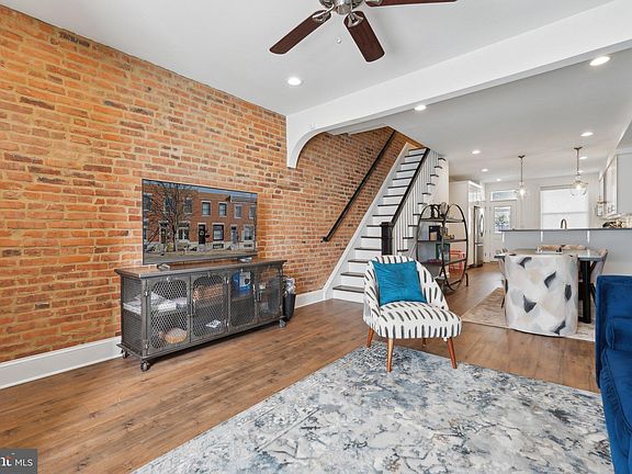 This beautifully maintained townhome in Brewer’s Hill offers 3 bedrooms and 3 bathrooms across over 1,900 square feet of thoughtfully designed living space. Historic charm meets modern updates, with stained glass accents above the front door and living room, exposed brick walls, and soaring 9-foot ceilings. The house also includes 5 more years of the CHAP tax credit. A HUGE savings in property taxes! The open-concept main level seamlessly connects the living, dining, and kitchen areas, creating an inviting space for both everyday living and entertaining. A gourmet kitchen anchors the space, featuring gleaming quartz countertops, a spacious breakfast bar, and stylish pendant lighting. Stainless steel appliances, a gas range, and an exhaust hood enhance both form and function, while ample cabinetry provides generous storage. Natural light fills the space, creating a bright and airy atmosphere. From the kitchen, step outside to a partially covered parking pad with alley access. In the basement you will find a fully finished lower level. This level includes a versatile bonus area, a full bathroom, and a bedroom—ideal for guests, a home office, or additional living space. Upstairs, you will find the primary and secondary bedrooms as well as the en-suite bathroom and hallway bathroom. The primary suite includes two large closets with built-in shelving and an en-suite bathroom with a dual vanity and large walk-in shower with built-in bench. The second bedroom includes plenty of storage with two closets and tons of natural light. The hallway bathroom has a full size tub. The laundry is also located on the main bedroom level for added convenience. A glass door from the hallway leads to a stairway up to the rooftop deck—one of the few homes on this block to offer this feature. With stunning views, it’s the perfect space for relaxing or entertaining. Located in Brewer’s Hill, this home is surrounded by a dynamic mix of historic charm and modern conveniences. Once home to Baltimore’s iconic brewing industry, the neighborhood now boasts a thriving scene of modern conveniences such as The Shops at Canton Crossing, a diverse set of restaurants, and breweries such as Mobtown Brewing Company. Additional highlights include 5 years of remaining CHAP tax credits (important to mention twice, lol) and an 8-year warranty on the rubber roof installed in 2020. Don't miss this opportunity to own a piece of Brewer’s Hill history with modern updates and exceptional features.