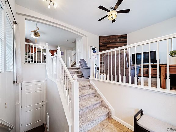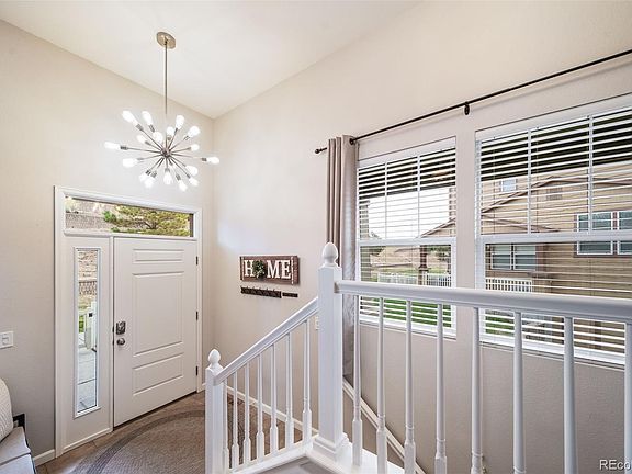 Come fall in love with this adorable 3 bedroom, 3 bathroom end unit townhome in The Meadows. Immaculately maintained and move-in ready. The bright and open floorplan features a spacious family room with a cozy gas fireplace, kitchen with upgraded cabinets and plenty of storage, dining room, breakfast bar, stainless steel appliances, gas range with double oven feature, new light fixtures, powder bathroom, and large laundry room with included washer and dryer. Upstairs you will find the primary suite with cherry wood floors and beautiful views, en suite bathroom with soaker tub, walk-in shower, and dual sinks. Two additional bedrooms, and a full bathroom complete the upstairs. The two-car attached garage and full crawl space provide for plenty of additional storage. Wonderful location facing open space. Easy living in this low-maintenance community. Enjoy all The Meadows has to offer with year-round activities, multiple trails, tennis courts, playgrounds, 2 outdoor pools, dog park, and nearby dining. Close to Phillip S Miller Park, Outlet Shops & I-25