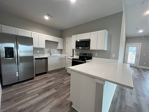 Just West of West Street on the North side of MacArthur, enter the brand new neighborhood of Blue Lake Villas. Neighborhood walking paths & ponds in the Haysville School District. 6 new units to choose from if you reserve now! Sparkling new 3 bedroom 2 bath duplex with attached 2 car garage, shady patio and fully fenced yard with sod. Mowing & Sprinkler provided. Luxury features of the property include: Quartz counters throughout, walk in pantry closet Upgraded French door fridge with water and ice in the door Luxury vinyl plank flooring throughout, no carpet, easy to clean and hypoallergenic. Up to 2 pets approved per unit with $300 pet fee. Owner pays mowing & sprinkler Tenant pays all utilities such as electric, water, gas, trash One Time Pet Fee of $300 non-refundable, up to 2 animals permitted. No additional monthly pet rent. We are straight forward with a flat rent rate, no nickel and dime fees because we respect our tenants and expect them to enjoy our beautiful new property with the same level of respect.