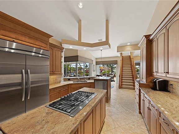 Boaters Dream!! Exceptional Aubuchon Home with sailboat access minutes to the river located in the prestigious Savona neighborhood on a 200+ foot canal. At 3,602 SF and 5 bedrooms, 4 baths this home has all the space you need. Master suite w/ tray ceilings, 2 walkin closets & sliders to pool deck. Gourmet kitchen w/ stainless steel appliances to include Viking stove, Thermador refrigerator, solid wood panel custom cabinets & granite counter tops. Two zone A/C both which have been replaced and generator w/ in-ground propane tank. Water softener system & reverse osmosis on faucets. Upstairs guest suite w/ screened balcony to enjoy the western sunsets. Large accent lighted outdoor living space w/ heated saltwater pool & spa with new filtration auto fill and remote controls, and outdoor kitchen with Viking grill, sink, and refrigerator. Deep garage w/ parking for 3 cars. Black painted fence in rear of yard w/ professional landscaping. New paver walkway to large dock with 20k lb boat lift and added pilings to accommodate up to a 60 ft boat. Captains walk and 50 amp dock service with freshwater at dock as well as new decking. Don't miss the best of what Southwest Florida has to offer.