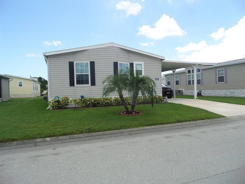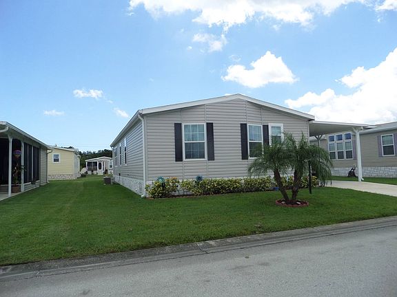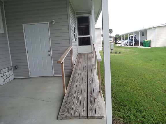 SELLER WILL OFFER ONE MONTH'S LOT RENT WITH FULL PRICE OFFER. SUPER MOTIVAED!!!! This home is like walking into a New home. To enter either use the steps into the foyer or up the ramp, into the enclosed sun room. Let's take the ramp. You will notice the sun room is fully screened with tall slider windows and sliders that go into the Gorgeous kitchen. Large island with a breakfast bar, Beautiful counter tops, pantry, lots of cabinets and all the appliances stay. Dining area back towards the sliders. Kitchen is open to the large living room, creating a very open space. Living room has tall windows and a ceiling fan. As you go down the long hallway, you will notice the laminate flooring throughout the entire house, no carpet at all. First you will get to the den, perfect for a home office with French doors and a ceiling fan with a light, or can be used as a guest room. Large indoor laundry room and the washer and dryer stay if you want them. Laundry room has a table to fold your clothes. Large guest room that can hold a queen or king size bed with large closet and ceiling fan. Hall bath has a shower / tub combo and comfort height commode. Large primary bedroom with walk in closet and ceiling fan. Primary bath is Huge with lots of counter tops, double sinks, tons of cabinets, comfort height commode and a Brand New walk in shower. Both baths have the same counter tops as the kitchen. This home is a MUST SEE. Lakes of Melbourne is a Wonderful 55+ community. Lot rent includes garbage pick up and use of all amenities. Heated pool to use year round. Tennis courts, shuffleboard and bocci. Giant clubhouse with billiards, large card / game room, library, fitness room, craft room and a ballroom with a stage for shows.
