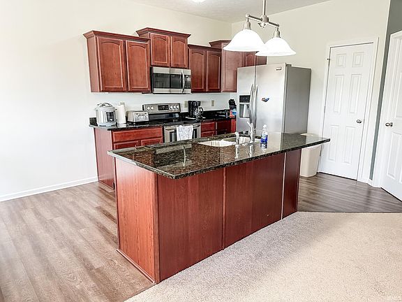 This beautiful one-owner home is located in Heritage at University Village! Comfortable single-level floor plan featuring 3 bed 2 full baths and many custom builder upgrades! Walk into the foyer entry and find a large open concept living area and kitchen with granite countertops and beautiful cabinetry. The large owners suite features a tile walk-in shower, spacious double vanity sink and over sized walk in closet. Builder upgrades include: Custom cabinetry, granite countertops in kitchen, marble vanity in bathrooms, 9-foot ceilings, finished insulated garage, fireplace, outside lighting, security system, and additional square footage.