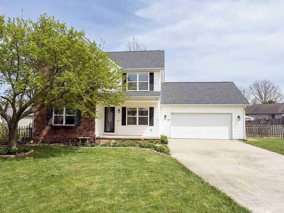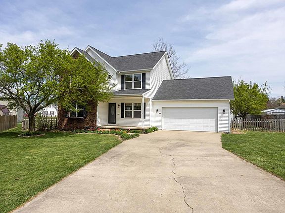 This beautiful 3 bedroom, plus office, 2.5 bathroom home is full of updates. There is new flooring throughout the main and upper floor, new paint throughout the whole home, updated light fixtures, switches, outlet covers and door knobs and newly painted kitchen and bathroom cabinets. The main floor features a nicely sized formal dining room, office (or living room), family room (with gas fireplace) and kitchen. There are 3 bedrooms upstairs, including the large primary bedroom with ensuite bathroom. The walk-in closet features a built-in safe. Also upstairs is the laundry room-washer and dryer are included. The outdoor spaces are just as nice as the interior-back deck, fenced back yard, including a separate fenced off area perfect for a garden, beautiful landscaping in front and back, playhouse and shed. The end of cul-de-sac location provides a low-traffic spot great for play. Other notable updates include: new windows in 2017, new roof in 2018, all HVAC (heat pump, a/c, water heater) replaced in 2020. This excellent location provides easy access to both Ellettsville and Bloomington amenities.