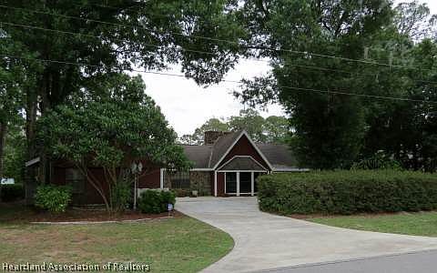 This 4 bedroom Tudor style home has a beautifully wood beamed living & family room with center stoned fireplace. As you enter into the grand foyer area you'll be welcomed by the sunken living room, a formal dining room with wet bar & mirrored walls. The 17X15 family room exits through a large glass sliding door to a screened 39X25 patio area w/views of the beautiful lush green back yard and rows of pineapples & other misc fruit trees. Over in the kitchen there's another dining area and Florida room which also opens to the patio area. Kitchen has lots of storage & convenient to the in-house laundry room. There are 2 master suites but the main room has a walk-in closet & vanity and the master bath includes a deep garden tub. Other features: 3 A/C units, circular driveway, intercom system, security system, fenced dog run with a concrete pad. Being sold "AS IS". $5,000 Purchase Incentive.