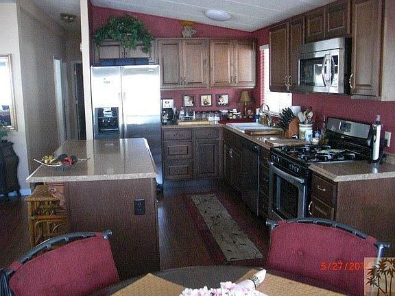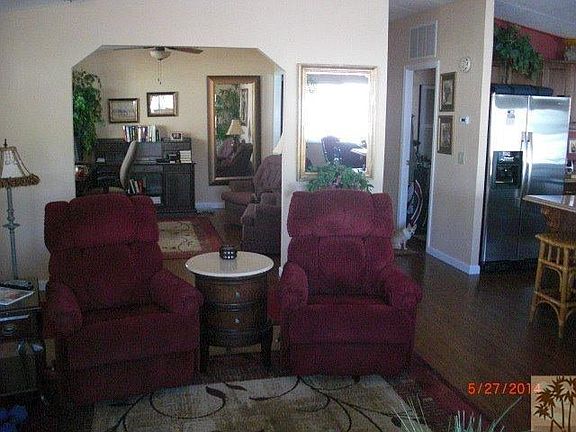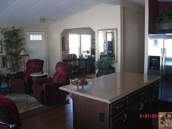 Bright and Cheery 2 BR/Den home built in 1988. Offers an open floor plan with vaulted beam ceiling, new kitchen cabinets and appliances, laminated floors, new doors, newer carpet, textured drywall and dual pane windows throughout. Tastefully decorated and offered furnished per inventory. Dues are $256 per mo. which provides for basic cable, trash pick up, gated comm/ww guard and 24 hr. security. Did I mention free golf?? Best kept secret in the valley. All this on a quiet street and close to the front gate and Club House.