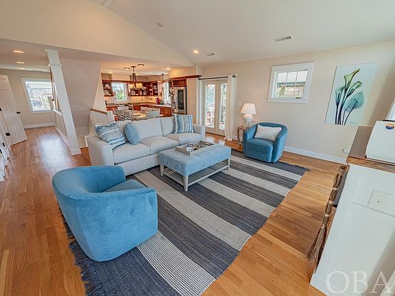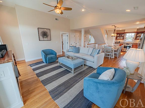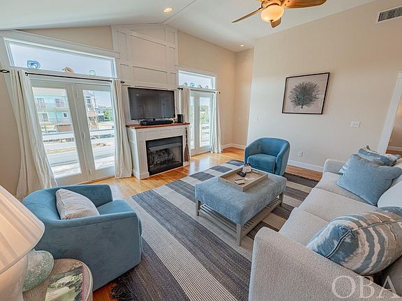 Welcome to "Noble One," a stunning and meticulously designed 4-bedroom, 3.5-bathroom home located in the serene northern end of Avon, just 500 feet from deeded beach access and past the 11-mile stretch of pristine National Seashore that separates it from Salvo. This exquisite property represents the perfect blend of luxury, craftsmanship, and coastal living, making it an exceptional choice for a primary residence, vacation home, or a high-potential investment opportunity. As you step into this beautifully maintained home, you're greeted by bespoke elements and thoughtful design. The entryway is protected by durable brick tile flooring, leading into common areas adorned with hardwood floors—ideal for sandy feet returning from the beach. Custom trim work, paneling, and a grooved photo rail throughout add an air of elegance and attention to detail. The heart of the home, a well-appointed great room, bathes in natural light, featuring direct access to a sun deck and a screened porch, facilitating seamless indoor/outdoor living. The chef's kitchen is equipped with high-end appliances, including a gas range, a special boat galley prep sink, and solid poplar cabinets crafted by local artisans. A unique brick tile backsplash and custom shutters, designed and installed by local artists, add a touch of local charm. The primary suite, conveniently located just off the living area, boasts a king bed, deck access, and a luxurious ensuite bath with a clawfoot tub and separate shower. Downstairs, three additional bedrooms (including a second king ensuite) offer deck access to enjoy the gentle ocean breezes. The top-level loft provides breathtaking views of both the ocean and sound, furnished with a daybed for additional sleeping arrangements. Outdoor enthusiasts will appreciate the nearby sound access for kiteboarding, kayaking, and SUP adventures. Avon is celebrated for its unspoiled beaches, fishing pier, local boutiques, surf shops, and dining options, offering an unmatchable coastal lifestyle. This home also features modern conveniences such as a propane tankless water heater, dual zoned AC units (less than three years old), and extra storage. The fenced yard ensures a secure area for pets, while the decks and screened porches invite relaxation and entertainment. From the craftsmanship in woodwork to the enchanting clawfoot tubs, "Noble One" is more than just a beach house—it's a one-of-a-kind experience waiting to be your new home or investment with a rental projection of over $42k. Don't miss the opportunity to own this magnificent property, where you can enjoy stunning sunrises and sunsets over the sound from your deck. Visit today and start making memories in this quintessential Avon retreat.