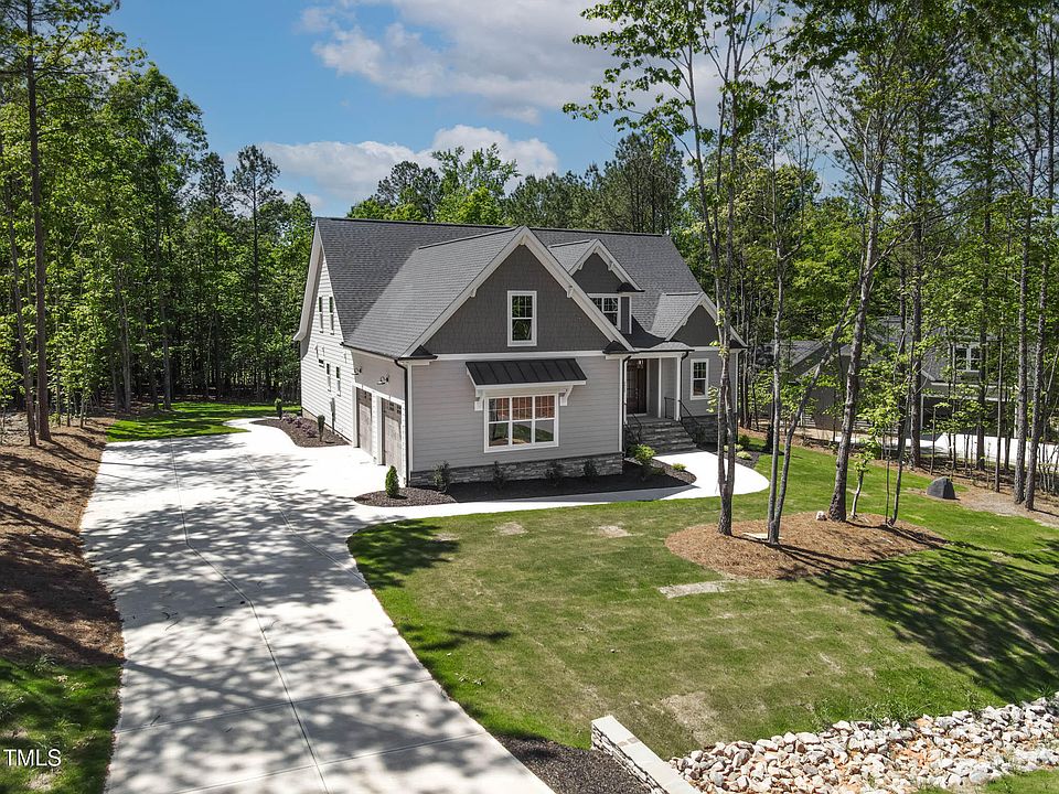 WHEN you arrive at this new home, you've definitely left the city hustle behind you. The attention to detail in this well-appointed 4 Bed/4 Bath home is second to none. Stained-in-place oak hardwood flooring is used throughout the main level, the 2nd level hall area and stair treads. Architectural features include a handsome front door, moldings, wide trim, wainscoting, coffered and tray ceilings and more. Enjoy gathering by the fire in the family room with its 2 large built-ins and French doors leading to the screened porch that overlooks the natural wooded view. A BEAUTIFUL kitchen includes stacked wall cabinets, floor to ceiling tall pantry, tiled back splash, 9 ft island, 36'' gas range with air fryer, hood vent, wall oven and microwave. A few steps away is the walk-in pantry. The breakfast area can also serve as an eat-in kitchen with its triple window view. Use the room off the foyer as a formal dining room or office. Kitchen, laundry, pantry and 3 baths all have quartz counters. Laundry and all baths have tiled floors. Primary shower and 2 tub surrounds are also tile. The windowed laundry room has cabinets and a sink. The drop zone leads to the side-load 23.5 feet x 26.75 feet 2-car garage with 2 oversized doors. On the main level there is the primary bedroom ensuite and large walk-in closet and a second 14' x 12' bedroom. The second level features 2 more bedrooms and 2 full baths, 1 of which is an ensuite. Plus: a super-sized finished bonus-game room, unfinished future media room or office, and lots of walk-in attic storage space. Cedar Knolls is an easy commute to RTP, RDU Airport, Brier Creek, Wake Forest and Raleigh. An abundance of shopping, restaurants and sundry services are available in neighboring Wake Forest and North Raleigh. And, there's charming revitalized downtown Franklinton and Youngsville. Come see Cedar Knolls for yourself.