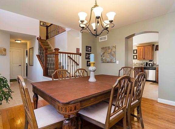 This quality construction offers the exceptional combination of upscale finishes, a finished basement, and a 3-car garage at this price point. The entire 1st floor features ceramic tile and hardwood flooring. The distinctive back-facing stairway features oil rubbed bronze spindles. The kitchen features hickory cabinets, a custom tile backsplash, and stainless steel appliances. The family room offers hardwood floors and a corner fireplace. Upstairs, recently installed hardwood floors run through the hallway and master bedroom. The master bath offers separate whirlpool tub and walk-in shower and a private toilet. The finished basement offers a large rec room, 5th bedroom, & 3rd full bath, along with plenty of storage. The entire house features high-end Andersen windows, and the house backs to commons, offering extra space between the house and its backyard neighbors. See HD photo tour and 3d virtual tour!