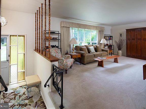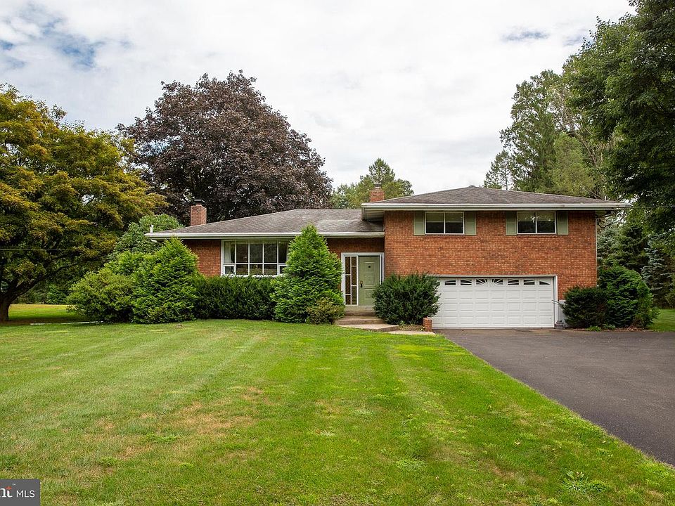 This three bedroom brick home is located on a one acre lot near Doylestown Boro. The contemporary home with a mid-century nuance is light filled and most rooms have views of the tree lined property. The living room and dining room have spacious room sizes and tiled bow windows. The eat-in kitchen has cherry cabinets and a nearby powder room. Up a few stairs are three nice sized bedrooms and two tiled bathrooms. The first floor and upper level have wood floors under carpeting. The lower level used as a family room, has radiant heat, a brick fireplace and a door to the backyard. This level has lots enclosed of storage space and a laundry room. Enjoy the views from the sunporch that has half brick walls and windows on three sides and a walkout out to the back yard. The oversized garage, ideal for a workshop, also has radiant heat. There is generator hook-up. This house is move in ready, but needs some updating. This is an ~as is~ sale.