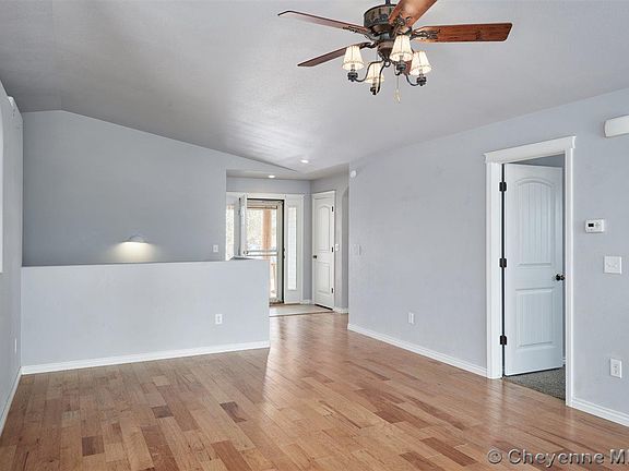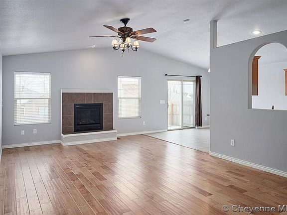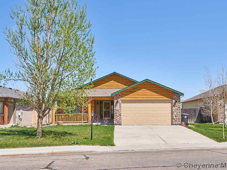 Uniquely Wyoming! Rare Satterfield property with rustic log and stone exterior! Gorgeous inside and out! Designer paint! Hardwood flooring! Large living room with gas fireplace! Spacious eat-in kitchen with all appliances, ample counter-cabinet space and pantry! Massive master suite complete with walk-in closet and spa like bath! Finished basement with family room, full bath and two large bedrooms, one with jumbo sized closets! large fenced yard! Covered porch, patio and storage shed! Central A/C! Amazing!