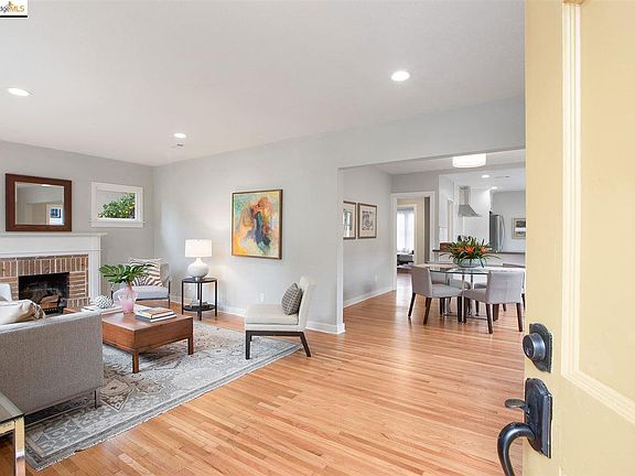 1924 Charm, Modern lifestyle! Renovated Bungalow in Upper Laurel! Flanked by ribbon-glass, the front door invites you into a spacious living room with fireplace and refinished honey-colored hardwood floors. The airy, open floor plan flows from the front room through the dining room, over a large pass-through breakfast bar of gray quartz to a totally remodeled kitchen featuring new stainless appliances, tile floors, recessed lighting, laundry nook, doors to back yard and side porch. Both bedrooms have walk-in closets and the remodeled bath is updated with sleek and practical details. Plumbed semi-finished basement room for shop/hobby. Detached converted garage with french doors. Generous, newly fenced yard with mature lemon trees, expansive lawn & patios for sunning and afternoon BBQs! Just blocks to Laurel District: dining, gym, hardware store and coffee! Close proximity to amazing parks and schools. Extremely Convenient access to Casual Carpool, Transbay Bus & Highways!