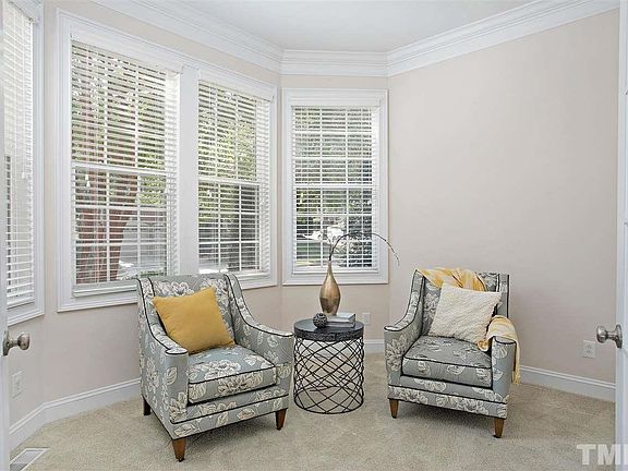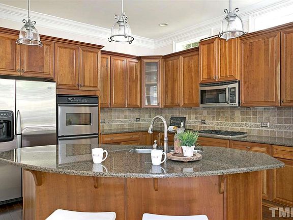WHAT A FIND! Quality built BRICK TRANSITIONAL HOME w/ Open Flowing Floor Plan in convenient location near Crabtree, Rex, 40, 440 & 540! Spacious Main Floor Master Suite, Main Fl. Study/Liv.Rm, Formal Dining Room, Chef's Kitchen w/ Double Ovens, Gas Cooktop, Granite Counters overlook Great Room. Gleaming hardwood floors throughout most of main level. Large Upstairs Loft Area, Bonus or Media Room, +2 Beds & 2 full Baths. Lovely TREX Deck overlooks private yard. Landscaping maintained by HOA.